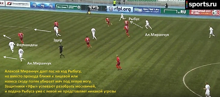 В Уфе интеграция португальца в систему «Локо» вышла на новый уровень – он стал смещаться на фланги, а на позицию центрфорварда в такие моменты выдвигался Алексей Миранчук.