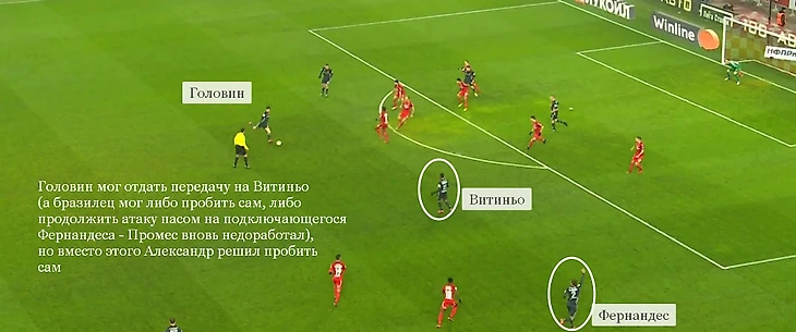 Удивительно, но после возвращения Зобнина в оборону ЦСКА активнее атаковал левым краем. Марио Фернандес в заключительные 17 (с учетом добавленного времени) минут сделал всего 5 передач (1 – в финальную треть), 6 раз коснулся мяча, и даже на верховые забросы на правого латераля армейцы оказались не способны. Более того, с позиции левого защитника Зобнин в концовке отдал пас на Зе Луиша, который должен был становиться результативным (Зе не попал по воротам).