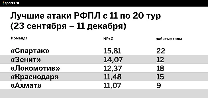 На отрезке после 10-го тура лучше «Спартака» в России не атаковал никто.