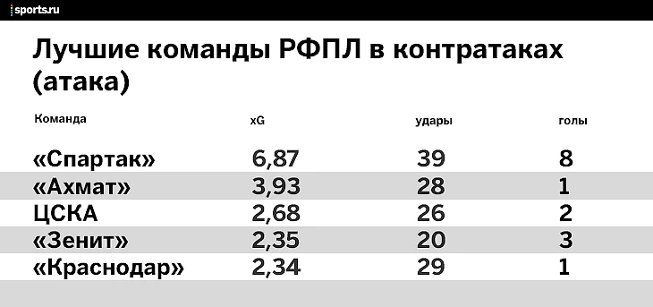 Во второй половине 2017-го «Спартак» – чемпион России по контратакам. С очень серьезным преимуществом.
