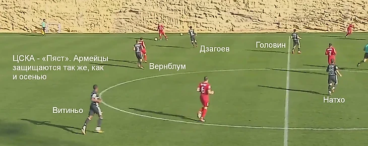 В играх с «Пястом» (0:0) и «Эльче» (3:0) ЦСКА играл с тремя центральными защитниками. Против поляков команда Гончаренко действовала так же, как осенью: большое количество диагоналей от Игнашевича и Натхо на Марио Фернандеса, частые обводки Головина, 5-2-3 при позиционной обороне.