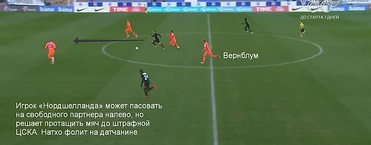 Слишком высокое расположение Фернандеса и новая роль Вернблума приводили к проблемам ЦСКА при быстрых контратаках «Нордшелланда». Минимум два выпада датчан получились крайне опасными, и в обоих случаях Понтус явно не успевал за эпизодом.