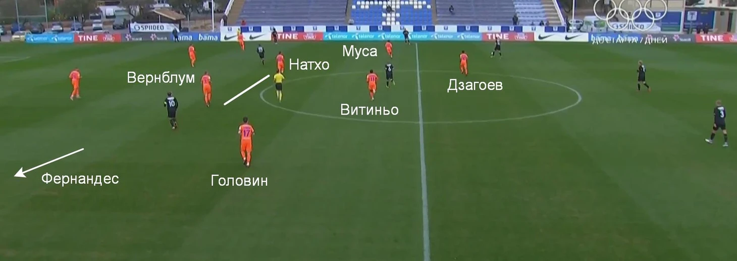 Против «Нордшелланда» Ахмед при обороне опускался на левый фланг и менялся местами с Дзагоевым (при этом не помешал подаче, после которой ЦСКА пропустил). При атаке Муса часто смещался в середину к Витиньо.