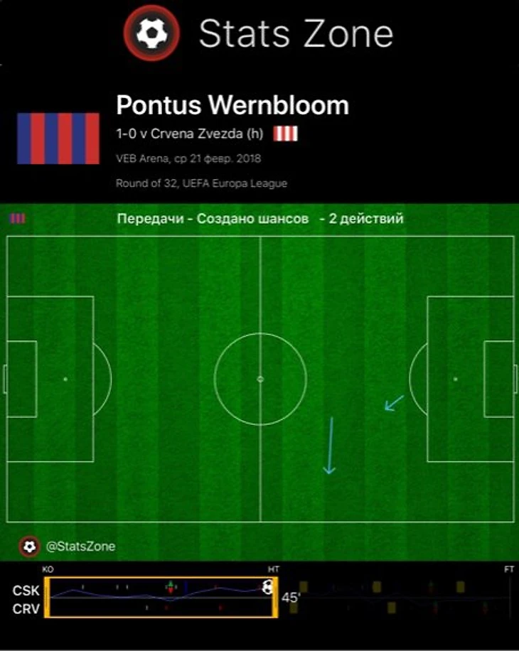 В остальных ситуациях при получении передач Вернблум принимал неправильные решения, и атаки ЦСКА заканчивались. Неуместные стенки с Мусой, Витиньо и Фернандесом, пасы в недодачу – так Вернблум действовал в первом тайме. Лишь 60% передач Понтуса до перерыва (их было 15) достигли адресата – так плохо в среду не пасовал никто.