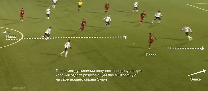 Как и Подберезкин, Попов находит свободные зоны между полузащитой и обороной соперников «Рубина». Разница между двумя новичками казанцев – в скорости принятия решений. Попов после приема делает два-три касания для обостряющей передачи на форварда, Подберезкин обычно проводит с мячом больше времени.