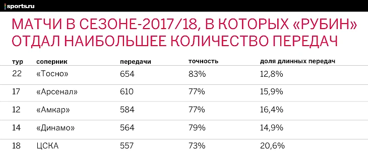 По итогам первой части сезона «Рубин» занял 6-е место по PPDA – метрике, оценивающей качество прессинга. Это количество допущенных передач на оборонительное действие. К таким действиям относят попытки отборов (в том числе неудачные), перехваты и фолы. Осенью PPDA казанцев находился на отметке 9,29.