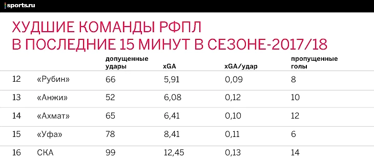 Хуже «Рубина» в промежутке с 76-й по 90-ю минуту действуют только четыре команды.