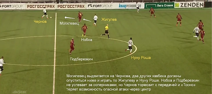 В матчах с «Анжи» (в особенности в первом тайме) и с «Тосно» Нобоа, Могилевец, Подберезкин и Попов хорошо двигались, создавая необходимые для розыгрыша мяча треугольники. Игра с командой Парфенова вообще стала аномальной для бердыевского «Рубина» – рекорды по числу передач и их точности при минимальной доле длинных пасов.