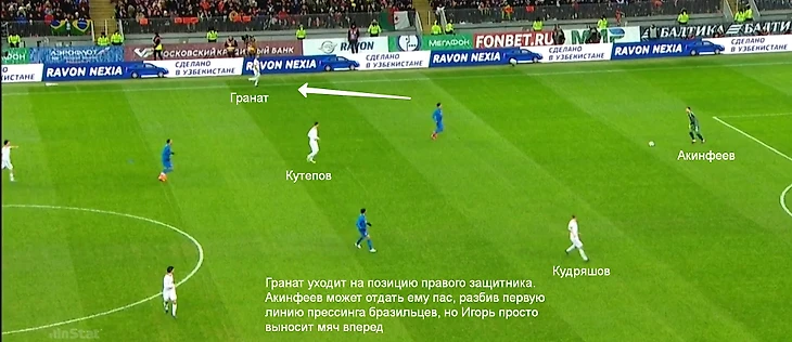 Травмы Джикии и Васина вынудили Черчесова перестраивать оборонительную линию. Правым центральным защитником (его важная задача – участие в прессинге) стал Гранат. До игры с Бразилией Владимир был лишь на одном сборе Черчесова, но, несмотря на это, с первого матча органично вписался в систему.