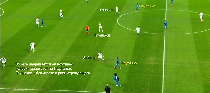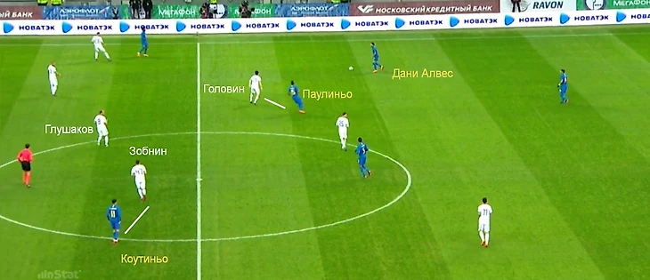 Против Бразилии (Глушаков) и Франции (Головин) наши тоже играли с одним оборонительным хавбеком. Головин и Зобнин с бразильцами, Ерохин и Дзагоев с французами – совсем не опорники. Они выдвигаются гораздо выше разрушителя. Например, в матче с Бразилией Зобнин отвечал за Коутиньо, а Головин оказывался против Дани Алвеса или Паулиньо.