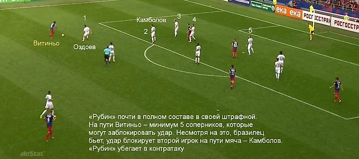 В этом чемпионате был заблокирован 31 удар Витиньо (в том числе 17 – из-за штрафной с игры). 2-е место по числу заблокированных ударов делят Бикфалви и Смолов – всего по 18.