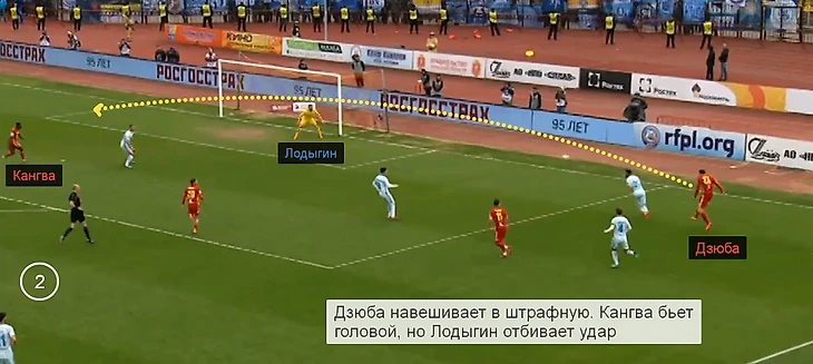 В этой контратаке против Дзюбы играл Скроботов, который вообще часто оказывался рядом с форвардом в первые 20 минут. После матча Манчини объяснил раннюю замену защитника сменой тактики, но наверняка причина не только в этом – Скроботов проиграл все единоборства Дзюбе, в том числе вверху.