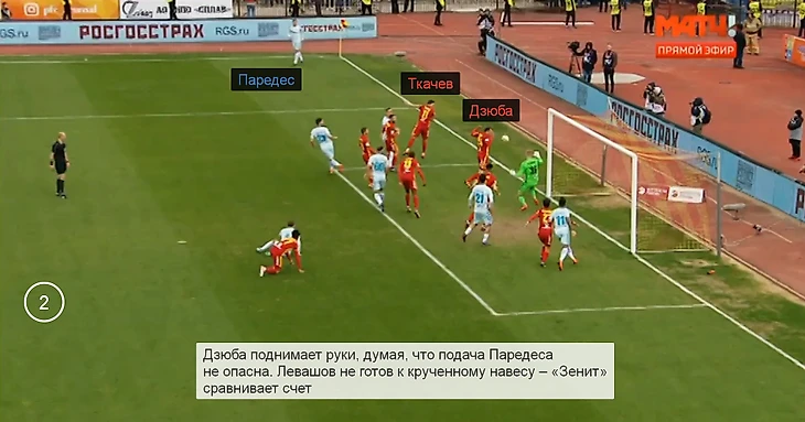Единственный эпизод в первом тайме, в котором Дзюба был плох – гол Паредеса прямым ударом с углового. При подаче Артем не отвечал за ближнюю штангу, но после смещений Ткачева и Кирилла Комбарова оказался ближе всех к Левашову.