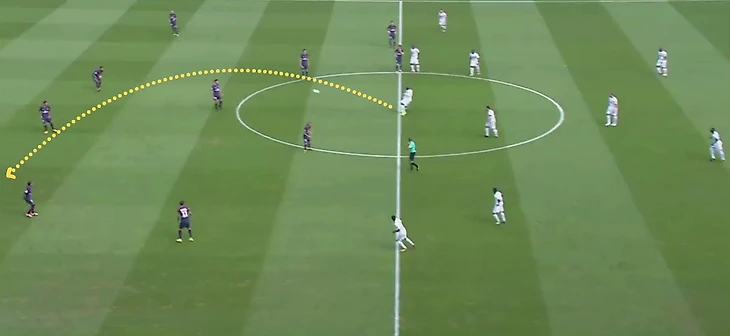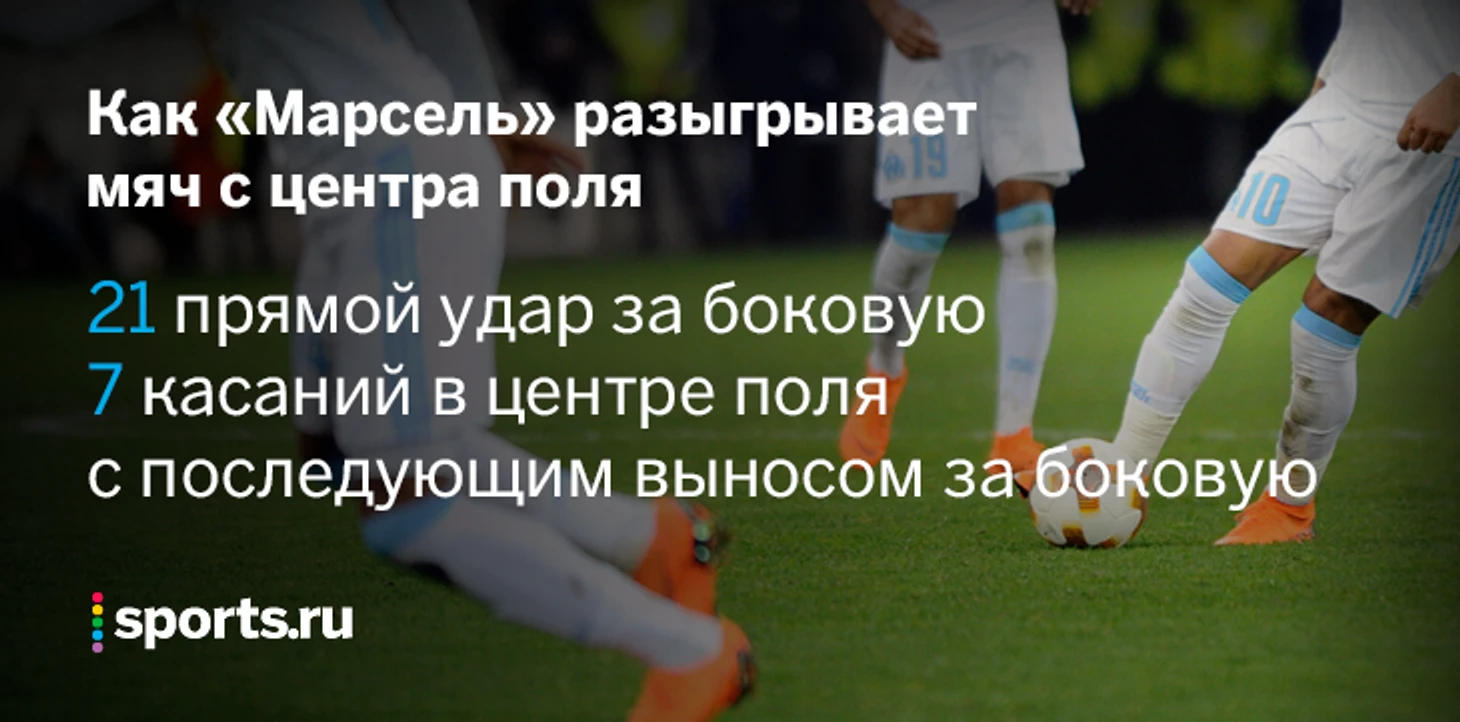 Один или два игрока «Марселя» располагаются в центральном круге. Сразу после свистка мяч выбивается к чужой штрафной – и не ради стремительной контратаки, а просто за боковую.