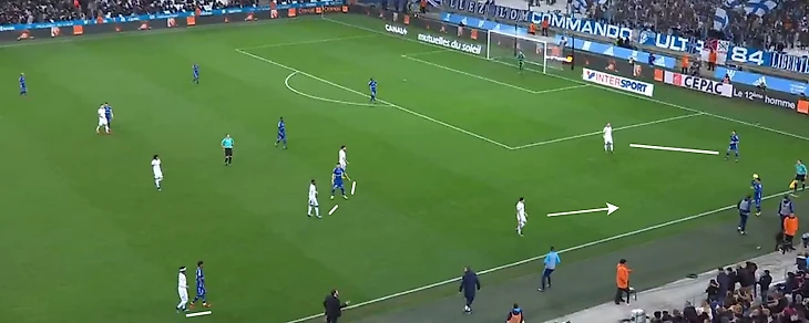 Главное происходит после выноса. Игроки «Марселя» быстро смещаются на фланг, с которого соперник вбрасывает аут, и вступают в прессинг.