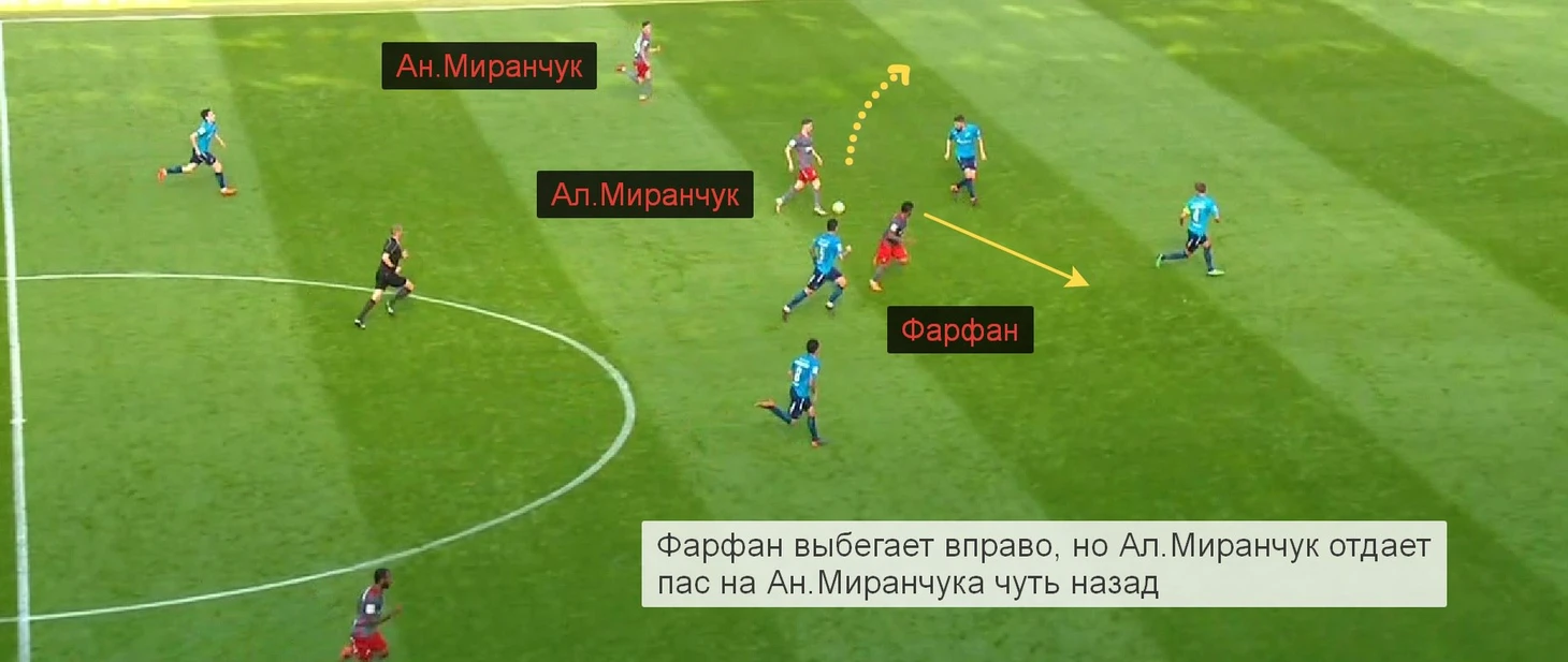 Первой звездой тайма стал Алексей Миранчук. Хавбек сделал больше всех передач (21), чаще всех касался мяча (35) и вместе с Фернандешем и Игнатьевым разорвал левый фланг «Зенита». Золотая атака «Локо» началась именно с Миранчука – Алексей выиграл подбор у Ерохина.