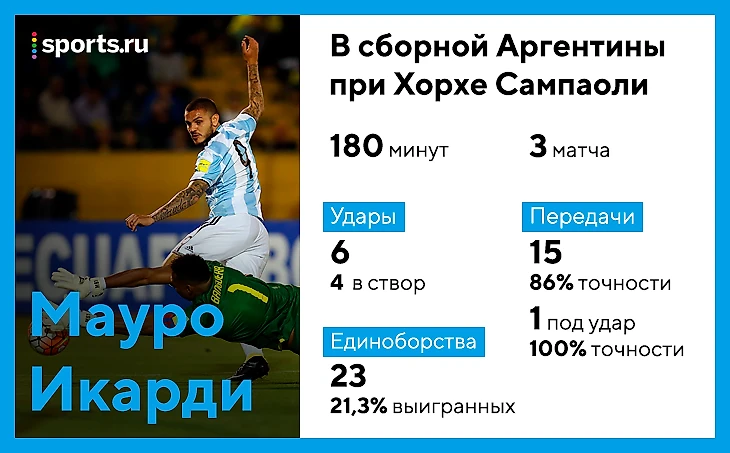 Икарди не получал вызовов в сборную с ноября – на матчи с Россией и Нигерией Сампаоли предпочел других, а к мартовским матчам нападающий не набрал форму после травмы. «Я разговаривал с Сампаоли и знал, что он не вызовет меня на ближайшие игры сборной. Это правильное решение, поскольку я пропустил несколько матчей из-за травмы. Нужно дать шанс другим нападающим», – говорил Мауро.