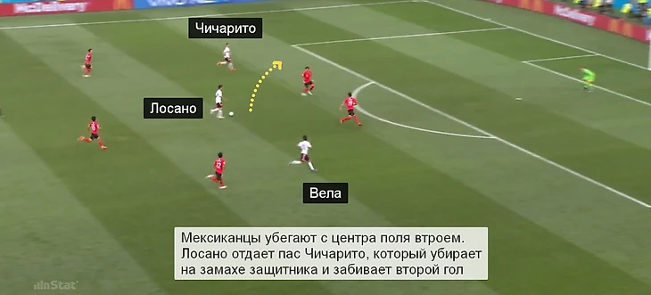 В матче с Южной Кореей у мексиканцев был новый челлендж – качественные позиционные атаки. Корейцы даже против Швеции владели мячом всего 44% и очень робко бежали вперед, поэтому сыграть так же, как против немцев, Мексика не могла.