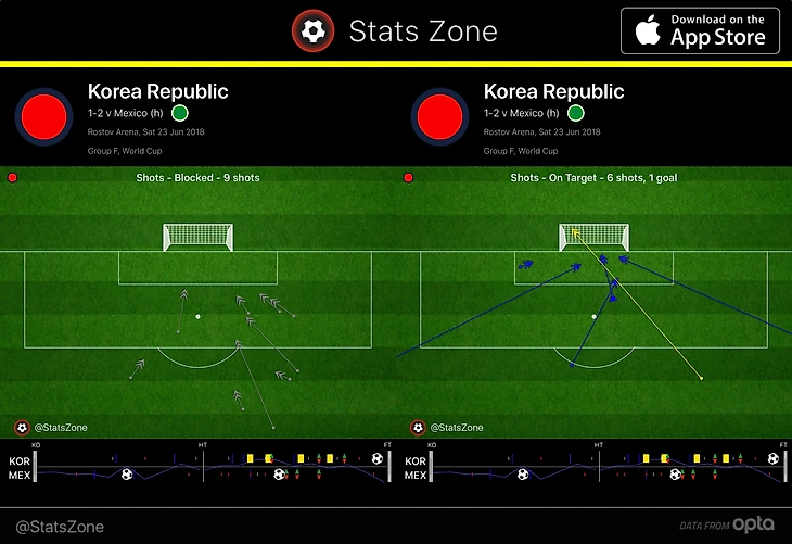 Южная Корея даже перебила мексиканцев по ударам, однако защитники заблокировали 9 из них – лучший показатель ЧМ. В результате азиаты нанесли всего 2 удара в створ из штрафной.