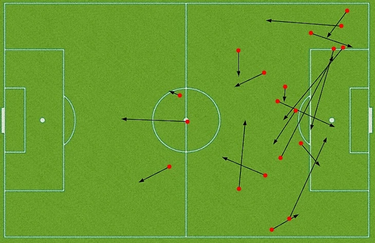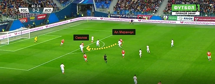Карта передач Смолова в матче с Испанией.