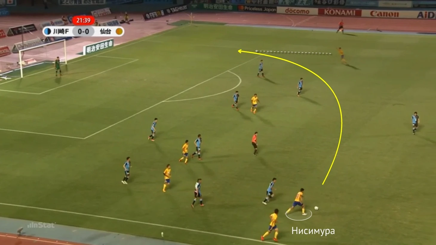 Нисимура – разноплановый нападающий. Он неплохо отыгрывается с партнерами спиной к чужим воротам, может протащить мяч на дриблинге (2,8 успешных обводки за 90 минут) и развернуть атаку классной диагональю.