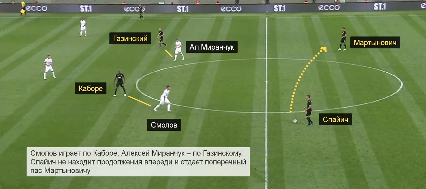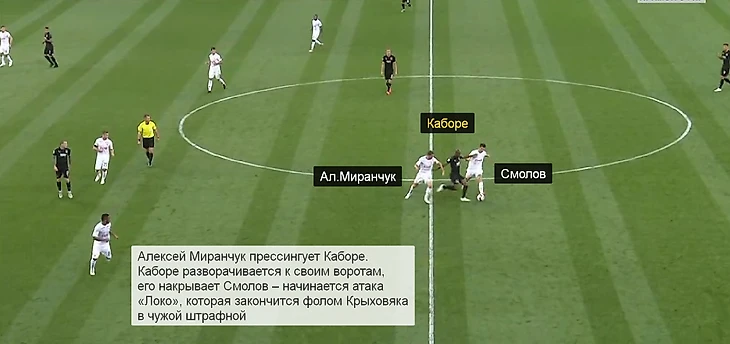 Смолов и Алексей Миранчук пытались перекрыть направления передач на Газинского и Каборе.