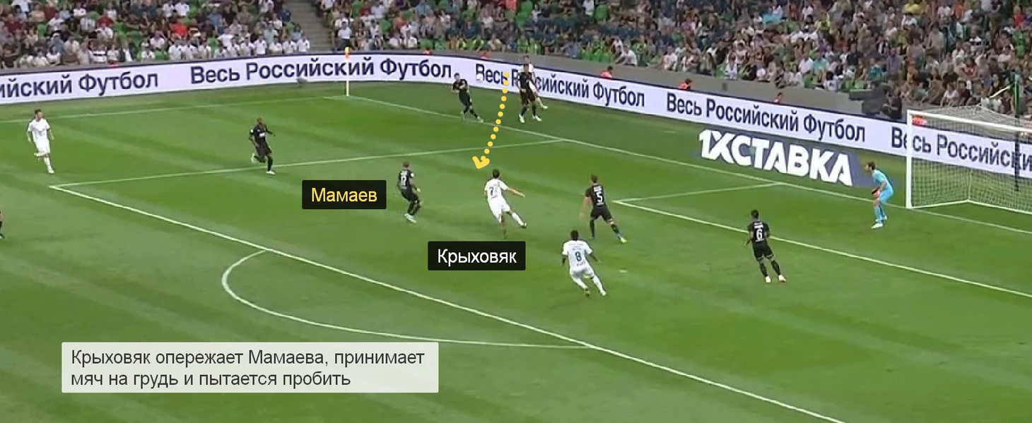 На 25-й минуте Крыховяк принял передачу Алексея Миранчука в штрафной и пытался пробить с полулета. Удар не получился, но «Краснодар» впервые за матч увидел, как поляк может выбирать позицию вблизи ворот.