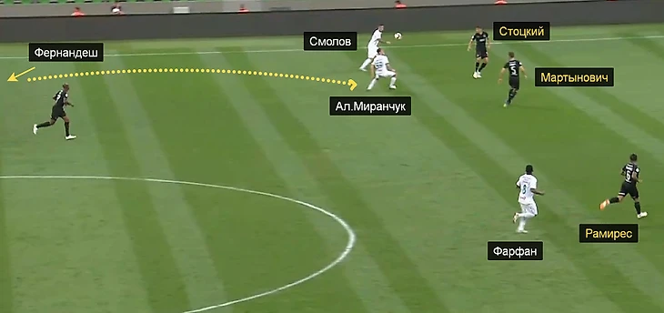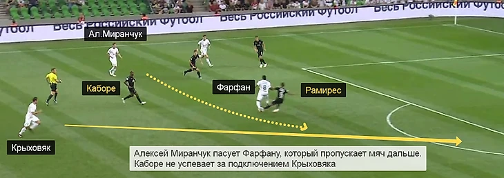 «Локо» выстроил оборону к прошлогоднему «Краснодару» – Игнатьев и Рыбус при позиционных атаках хозяев располагались очень узко, а Фарфан и Фернандеш должны были опускаться сильно ниже обычного.
