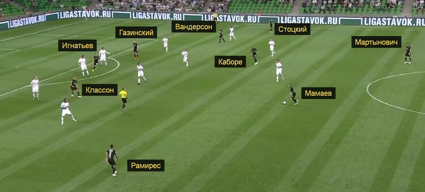 Крицюк, Рамирес, Спайич, Мартынович, Стоцкий, Мамаев, Каборе, Газинский, Классон, Игнатьев, Вандерсон