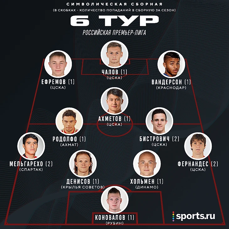 9 ударов Чалова за тур – рекорд сезона для футболиста РПЛ. К ним форвард ЦСКА добавил 4 подбора – никто из нападающих в шестом туре не подбирал мяч чаще.