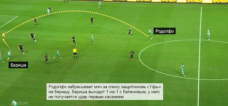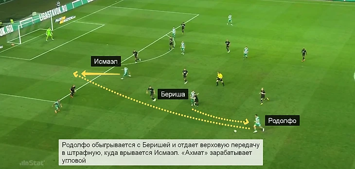 Появление Родолфо позволило «Ахмату» доставлять мяч к чужой штрафной за счет вертикальных передач верхом и диагоналей под забегания крайних защитников. До замены на 64-й минуте из-за травмы опорник «Ахмата» сделал 9 длинных передач – больше сделали только центральные защитники. Несколько передач Родолфо получились просто классными.