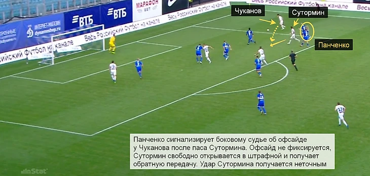 В обороне у Панченко было не слишком много работы, однако единственный реальный момент «Оренбурга» возник как раз из-за недисциплинированности Кирилла – хавбек «Динамо» показывал боковому судье, что нужно зафиксировать офсайд, а Сутормин в это время ворвался в любимый правый полуфланг и неточно пробил.