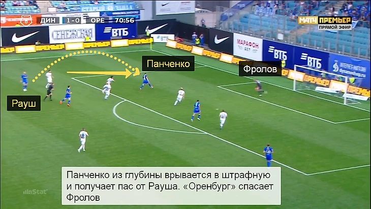 На 56-й минуте Хохлов сделал первую замену в матче с «Оренбургом» – вместо опорника Самбы Соу вышел нападающий Евгений Марков. Это было не простое кадровое изменение – «Динамо» перешло на схему с двумя чистыми форвардами (Марков составил пару Луценко), а Панченко сел глубже.