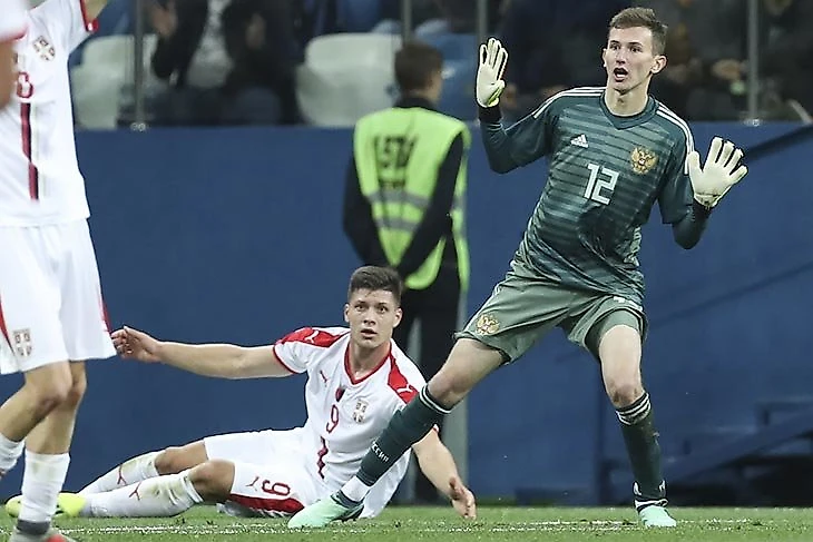 Всю игру с сербами просидел основной вратарь «Спартака» Александр Максименко. У него были неудачные матчи – в Греции и с «Динамо» – но были и очень классные перфомансы – например, в Краснодаре. Бушманов пояснил после матча: «Максименко не основной вратарь сборной, не провел ни одного матча до товарищеской игры с Египтом. В сборной нет вратаря №1, мы рассчитываем на всех». Это правда, даже в этом отборочном цикле у молодежки было 4 вратаря – Митрюшкин (4), Обухов (2), Мелихов (1), Лещук (1). Основным вратарем мог бы считаться Митрюшкин, но у него травма.