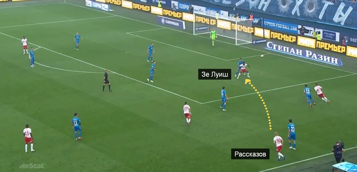 При четырех (из шести) вбрасываниях в штрафную с правого фланга игроки располагались иначе: вместе с Дзюбой у чужих ворот оказывался только один игрок (он находился ближе к дальней штанге).