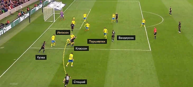Перед вторым голом Стоцкий выполнил уже полноценный ввод аута в штрафную.