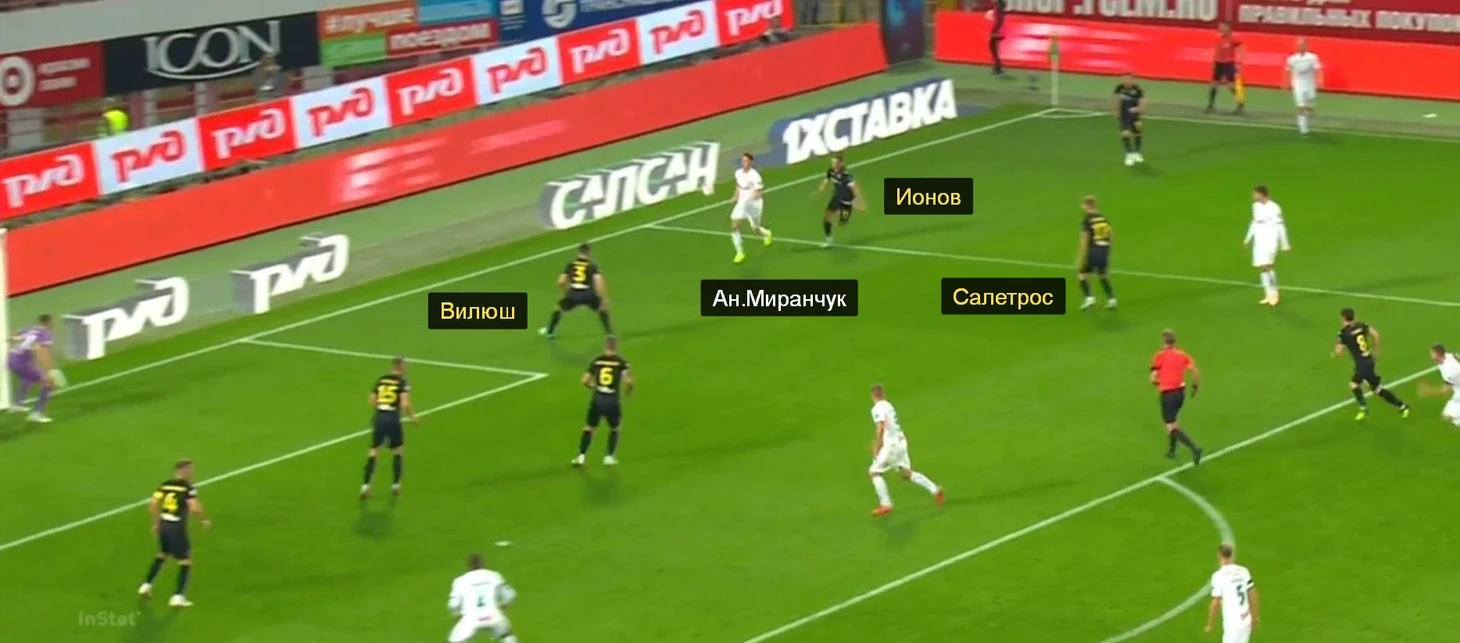 Салетрос был не готов подстраховать Ионова, а Вилюш не выбросился на Миранчука, ожидая передачи.