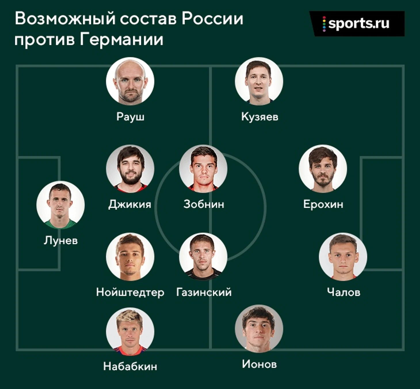 Возможно, нам стоит ждать появления Сорокина (например, на второй тайм в матче с Германией вместо Джикии) и братьев Миранчуков, но вряд ли Черчесов выстрелит многочисленными невынужденными перестановками в старте. Точно будут изменения на четырех позициях: вратарь, правый защитник, левый полузащитник, центральный нападающий.
