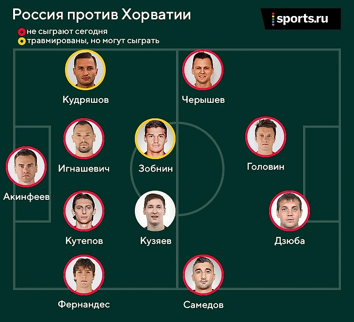 При отсутствии Дзюбы (и плохой форме Заболотного) будет разумно использовать Ерохина в центре – так Россия получит хоть какой-то вариант в верховой борьбе при длинных передачах со своей половины.