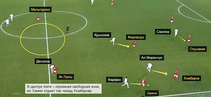 Смещений Ханни в полуфланг на своей половине могло быть больше – их было всего два-три (в этой части матч с «Крыльями» был лучшим), но они помогали разбить прессинг «Локомотива» и выдернуть Игнатьева почти к финальной трети.