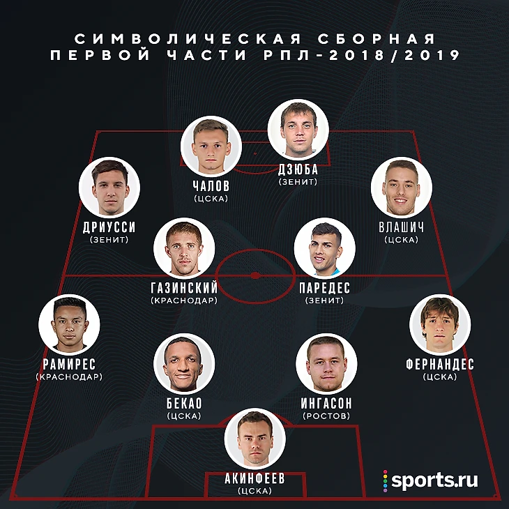 Касаемо ЦСКА: лучшая защита пропустившая меньше всех, поэтому Бекао и Акинфеев в основе; лучший бомбардир Чалов; Влашич топ по меркам РПЛ и Фернандес, тут думаю у всех без альтернативы, он фору любому даст на своём фланге. Ахметов мог бы быть в основе, будь выше ЦСКА в таблице, а так все по делу считаю.