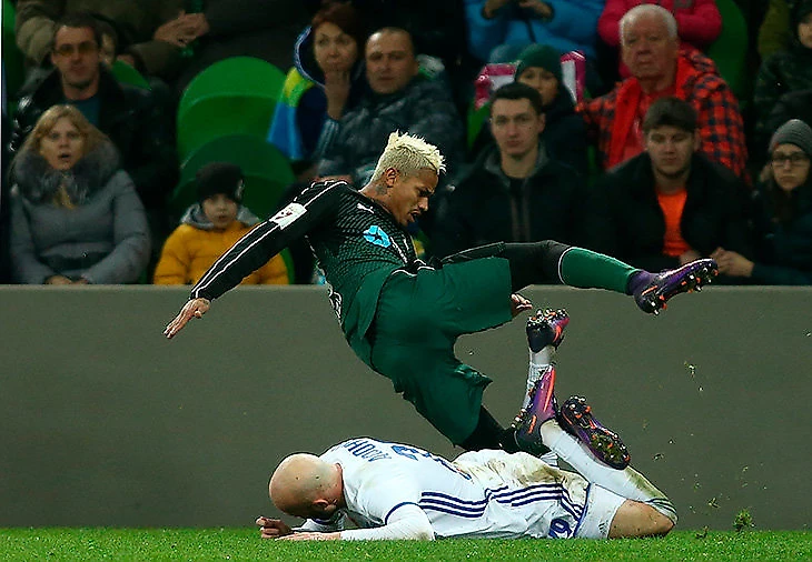 Это было только начало – на 12-й минуте Марио Фернандес перед линией штрафной свалил вываливающегося один на один Мухаметшина, за что получил красную карточку. Штрафной реализовал Рыков. Еще через три минуты забил уже Мухаметшин, замкнувший прострел Янника Джало.