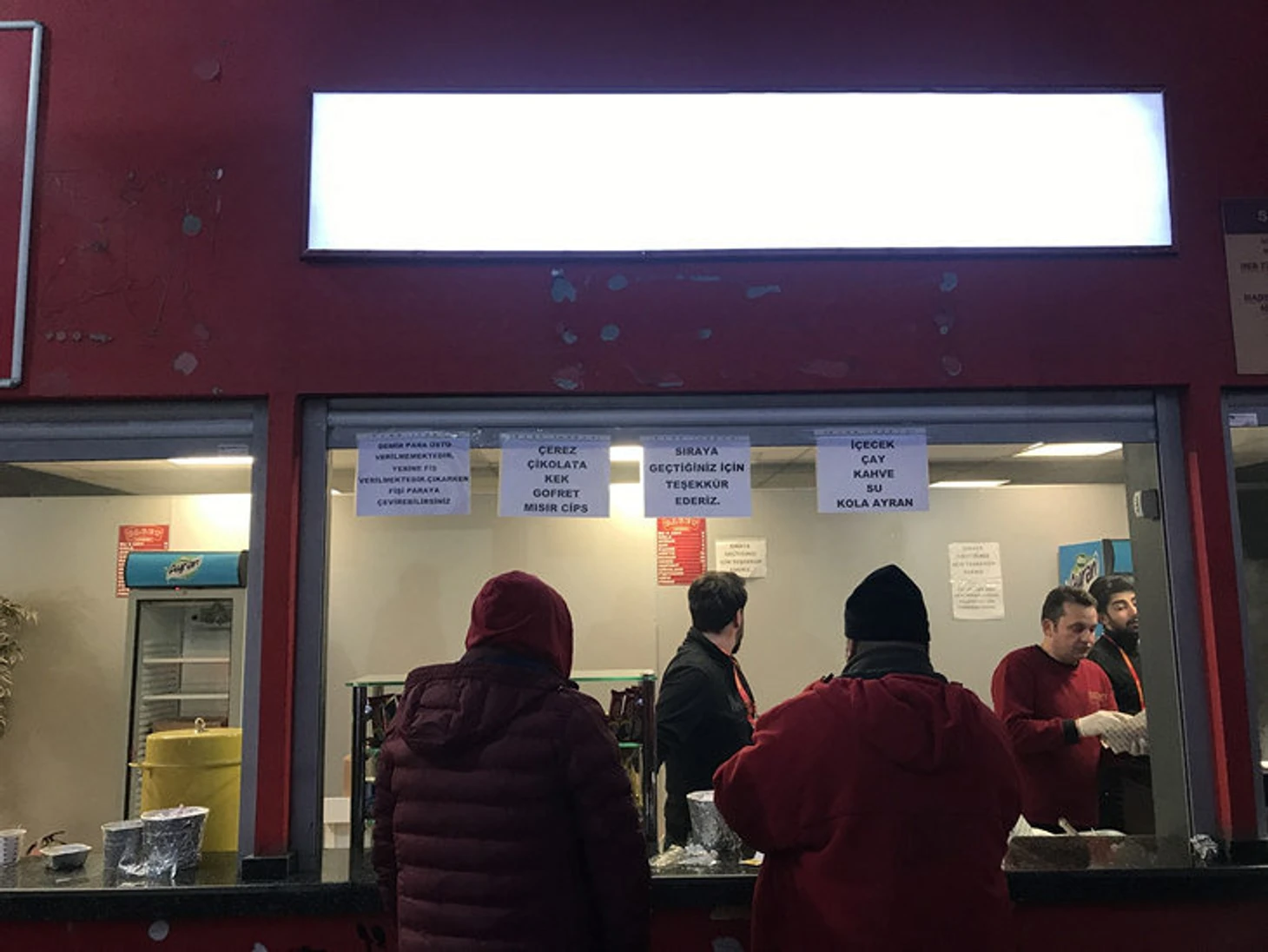 Развлечений на «Тюрк Телекоме» не оказалось – правда, и без них на «Галатасарай» отлично ходят (матч с «Трабзонспором» посетили более 47 тысяч человек при вместимости в 52650). В точках питания нет меню на английском (на нем не говорят и большинство сотрудников общепита), но в целом все и так понятно: чай (5 лир), кола (7 лир), хот-доги (15 лир), колбаса (18 лир).