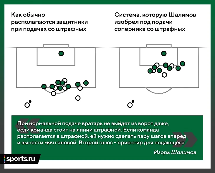 После перехода на новую систему «Краснодар» не пропускал после штрафных. В «Химках» я тоже ее внедрил – пропустили всего 1 мяч с «Балтикой», но там подача шла практически от лицевой линии.
