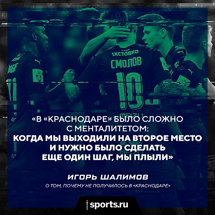 В «Краснодаре» было сложно с менталитетом: когда мы выходили на второе место и нужно было сделать еще один шаг, мы плыли. Впервые мы вышли на второе место к игре с «Зенитом»: если бы их обыграли, вообще вышли бы на первое.