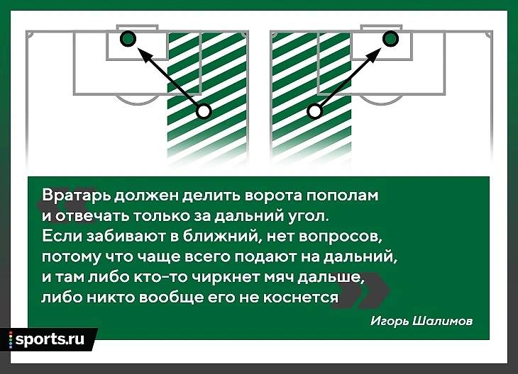 С этой системой добавлялись и новые требования к вратарям: они должны были делить ворота пополам и отвечать только за дальний угол. Если гол забивают в ближний – к вратарям вопросов нет, потому что чаще всего подача идет к дальнему углу, и там либо кто-то чиркнет мяч дальше, либо никто вообще не касается мяча.