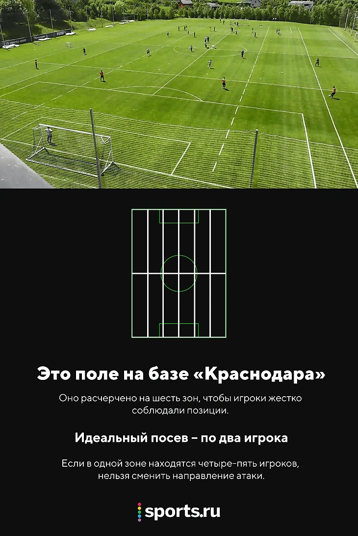 • У «Краснодара» уникальные для РПЛ тренировки: поле разделено на 6 зон, чтобы приучить игроков к позициям, а интенсивность игры устроена по метрикам Юргена Клоппа