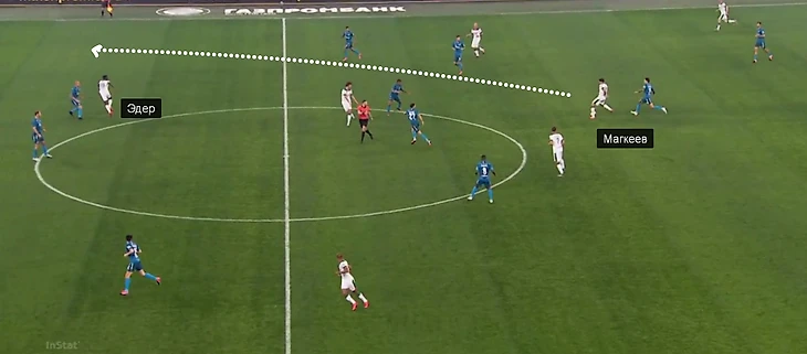 Вероятно, на темп ответных атак «Локо» влияла не только форма Крыховяка и Жоау Мариу (именно они чаще всего оказывались с мячом после потерь «Зенита» в средней части поля), но и открывания Эдера – за первый тайм португалец лишь однажды побежал за спину Ракицкому (и сразу получил передачу).