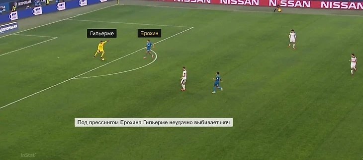 Например, атака с ударом Ерохина после паса Дриусси родилась с прессинга Александра до вратаря – Гильерме ошибся в передаче из-за этого давления.