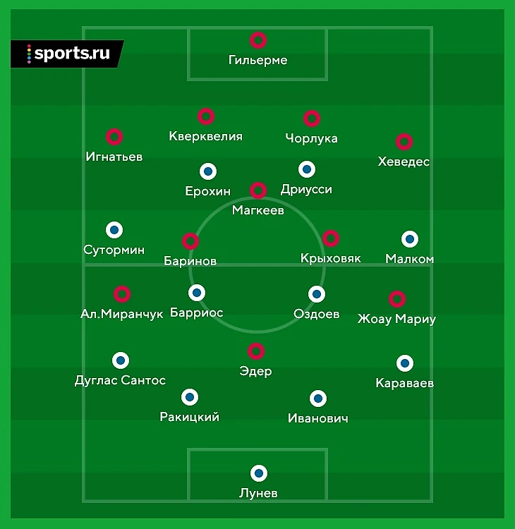 Юрий Семин выпустил Магкеева в середине поля с первых минут и сохранил 4-1-4-1, которые использовал в двух последних матчах на третьем сборе. Жертвой стал Рифат Жемалетдинов – его место справа занял Алексей Миранчук.